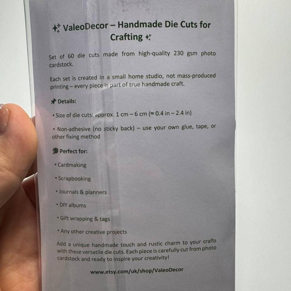 These die cuts are non-adhesive (not stickers) — perfect for all your creative paper projects where you can use your own glue, tape, or any preferred fixing method.