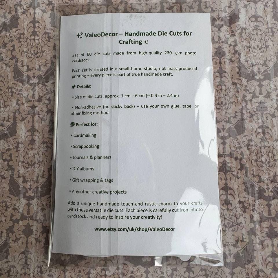 Sewing & Crafting Die Cuts – 60 Pieces | Handmade Photo Cardstock Cutouts by ValeoDecor